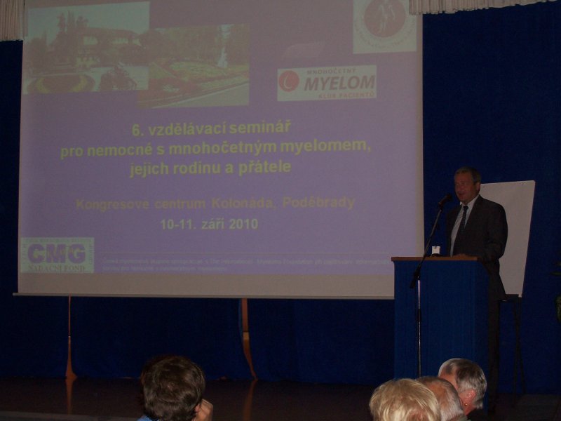 Šestý ročník „Vzdělávacího semináře pro nemocné s mnohočetným myelomem, jejich rodinu a přátele” se vrátil do již známých a osvědčených prostor lázeňského kongresového centra Kolonáda v Poděbradech. I tentokrát se podařilo zvolit vhodný termín, 10. – 11. září 2010 a seminář byl jako již tradičně doprovázen slunečními paprsky babího léta. Na organizaci se podílel nadační fond České myelomové skupiny (CMG) a Klub pacientů mnohočetný myelom (KPMM). Seminář opět podpořil významný partner CMG – The International Myeloma Foundation (IMF) a další finanční příspěvek poskytly společnosti Celgene a Lipomed.