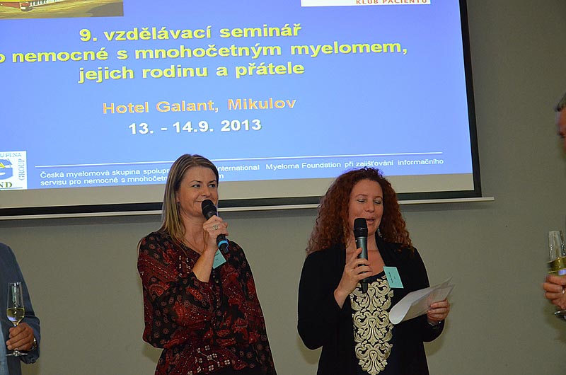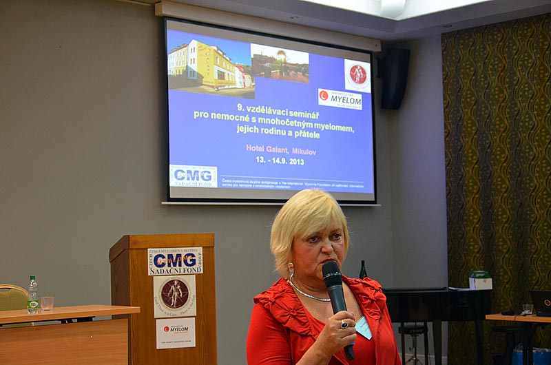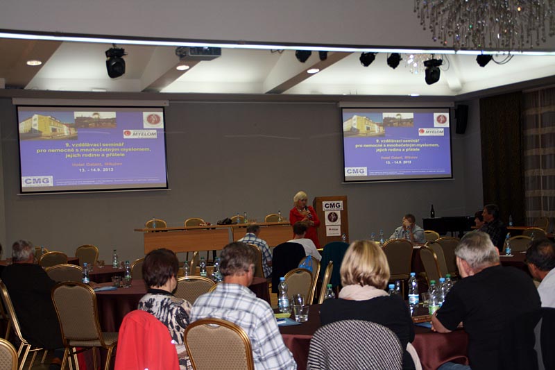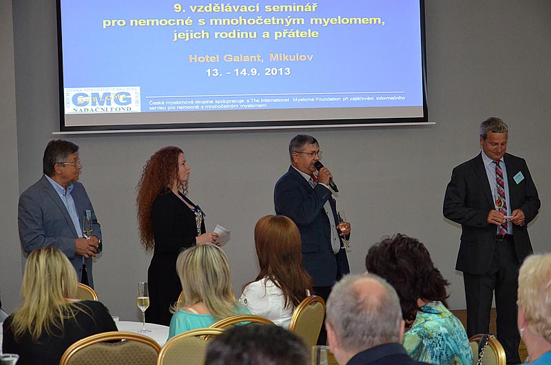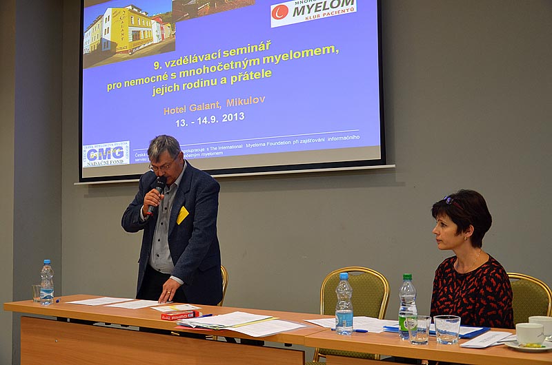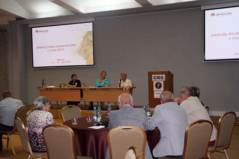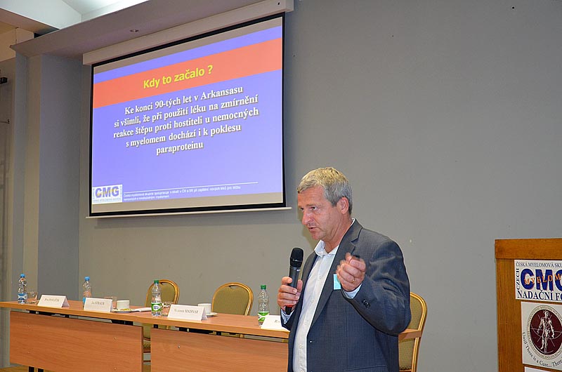 Velmi edukativním příspěvkem pak bylo sdělení MUDr. J. Strauba, který vysvětlil, jak se hodnotí účinnost léčby, jaká jsou nutná vyšetření a jaké typy léčebné odpovědi existují. Neméně zajímavý byl příspěvek prof. R. Hájka, který stručně popsal hlavní výhody a nevýhody nových léků, které s v poslední době v léčbě myelomu používají. Povzbudil také všechny přítomné, že v této oblasti jde medicína stále mílovými kroky kupředu.