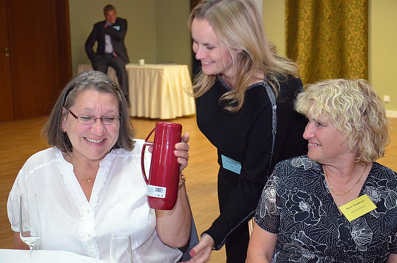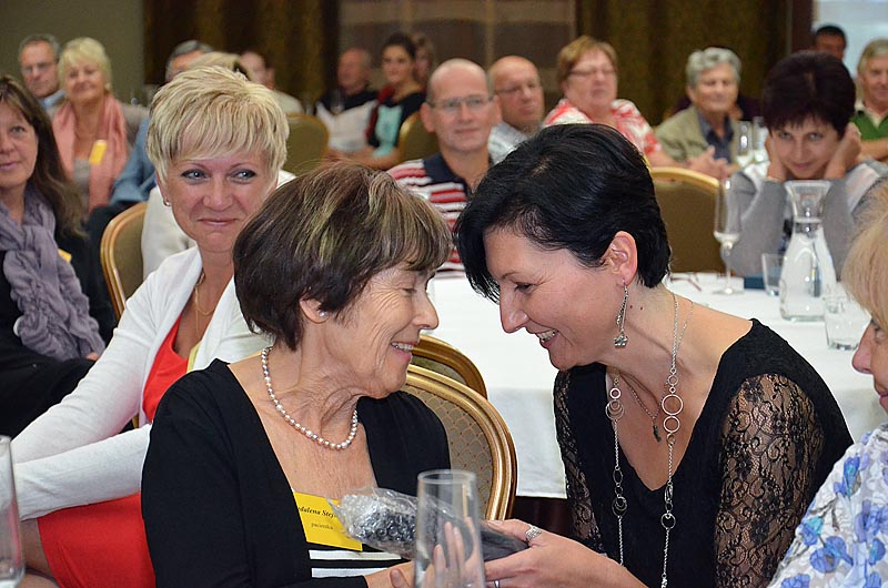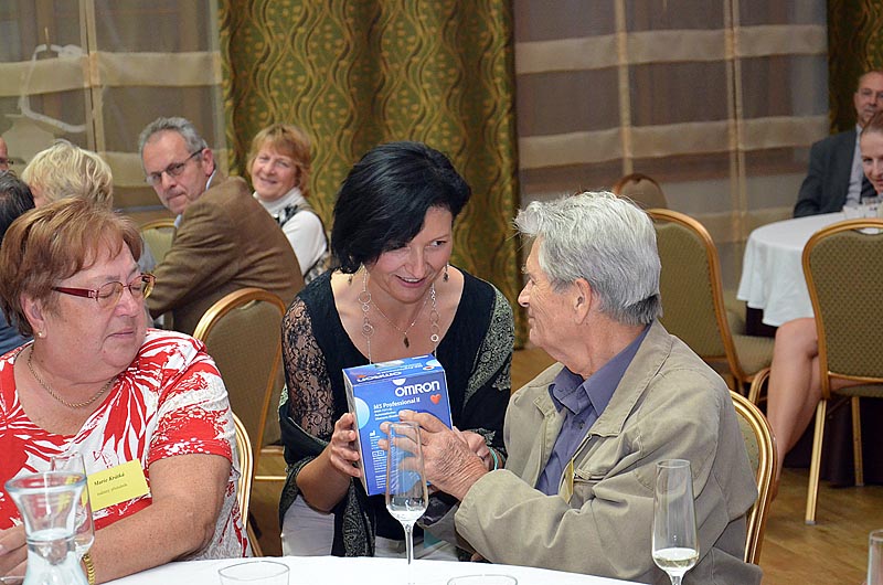 Na další část večera se těšili jak účastníci, tak i samotní organizátoři. I letos čekaly drobné dárky na ty, pacienty nebo členy Klubu, kteří se aktivně zapojují do jeho činnosti nebo se nějak podíleli na vlastním programu semináře. Na závěr několik dárků také zůstalo jako milá pozornost pro ty, kteří právě slavili narozeniny, přijeli z největší dálky nebo bojují s myelomem nejdéle nebo naopak byli diagnostikováni nedávno.