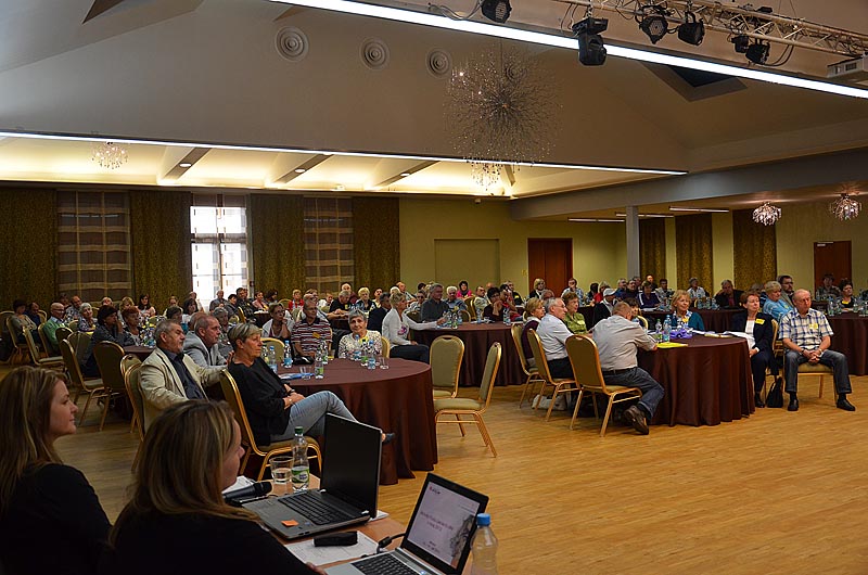 Po těchto dvou odborných sděleních se přítomní rozdělili na dvě části. Stalo se již tradicí, že doba před obědem patří valné hromadě Klubu pacientů mnohočetný myelom. Ti, co měli zájem se věnovat organizačním záležitostem Klubu, zůstali v hlavním přednáškovém sále. Valná hromada měla letos důležitý úkol a tím byla volba předsedy. Novým předsedou Klubu se stal pan Petr Hylena. Všichni přítomní poděkovali dosavadnímu předsedovi ing. J. Hájkovi za vše, co pro Klub udělal a novému předsedovi hodně sil v jeho nové funkci. Rodinní příslušníci, kteří nejsou členy Klubu, měli ve stejný čas možnost pohovořit s Mgr. P. Bučkovou a MUDr. P. Pavlíčkem o těžké roli pečovatele a shodli se na tom, že psychická zátěž padá na všechny v rodině, ne jen na samotného nemocného.
