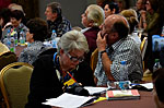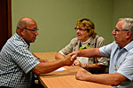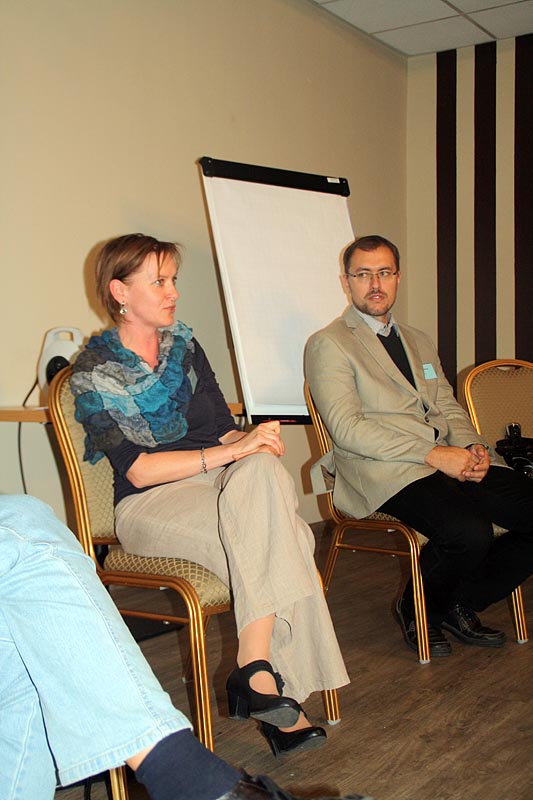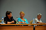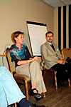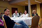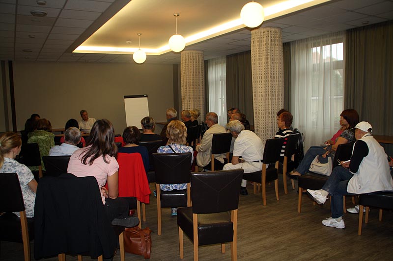 Další dvě skupiny aktivně diskutovaly nejen o nežádoucích účincích léčby, ale přítomní mohli využít tyto diskuzní kluby k otázkám na jakékoliv téma. Někdy vážně, jindy s humorem na všechny položené otázky odpovídali v jedné skupině prof. R. Hájek spolu s MUDr. J. Straubem a v druhé již z loňska sehraná dvojice doc. V. Maisnar s MUDr. P. Pavlíčkem. Skupiny se po krátké přestávce vyměnily a každý tak měl možnost účastnit se i jiného diskuzního klubu.