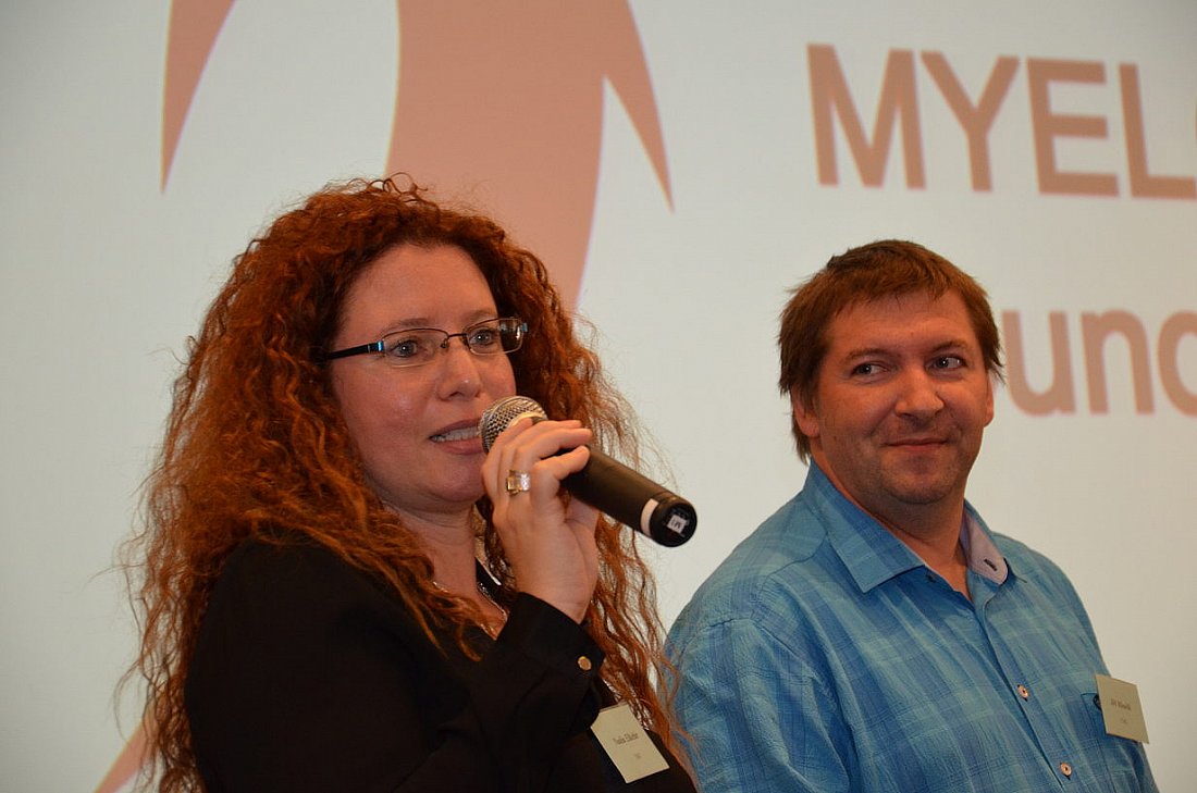 Po přestávce následovala oblíbená panelová diskuze. Na otázky, které byly nashromážděny od pacientů, odpovídali všichni přítomní lékaři prof. R. Hájek, prof. V. Maisnar, Dr. J. Straub, doc. J. Minařík a na sobotní diskuze s pacienty přijel také doc. L. Pour. K některým dotazům se vyjadřovali jednotlivě, na některé dotazy odpovídali všichni. Organizátorům se tak podařilo nabídnout pacientům a jejich blízkým zajímavé srovnání odpovědí. Konkrétní otázky a zvláště odpovědi si budou moci naši příznivci přečíst v jednom z dalších čísel klubového Bulletinu. Poslední příspěvek společný pro všechny přednesl prof. Hájek. Ve svém sdělení se snažil vysvětlit, jestli je pro pacienty dobré se účastnit klinických studií a jak a proč se pacienti do studií vybírají. Jednoznačným doporučením bylo se studií účastnit, ale zároveň objasnil, že ne všichni pacienti mohou být do studií zařazení z různých objektivních důvodů.