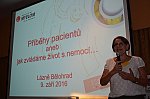 Je již nepsanou tradicí, že páteční večer se nese v uvolněné atmosféře a k ní rozhodně přispěly i dva životní příběhy našich pacientů. Z obou vyzařoval životní nadhled, síla, odhodlání a v neposlední řadě smysl pro humor, který jak všichni přiznávají, pomáhá překonat těžké chvíle. A že si jich naši pacienti užívají dost a dost. Malým potěšením byly také drobné dárky, které si organizátorky připravily jako poděkování pro ty, kteří se aktivně zapojují do činnosti Klubu pacientů, rozhodli se v Bulletinu podělit se svým životním příběhem nebo o něm hovořit na seminářích, pomáhají při přípravě programu klubových setkání, aktivně se účastní akcí pořádaných našimi partnery nebo jiným způsobem pomáhají s organizací klubových aktivit.