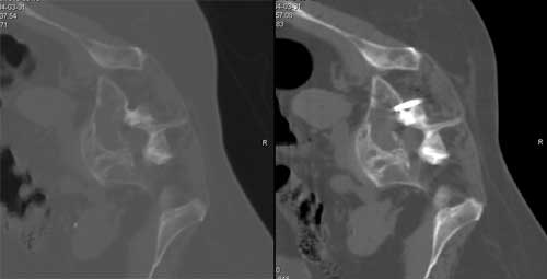 Co nejdříve po zjištění osteolytického ložiska musí následovat vyšetření ortopedem. Zvolení typu výkonu závisí na velikosti ložiska, jeho umístění, radiosenzitivitě (histolog. typ) a na celkové prognóze pacienta k přežití. (Ortoped pro svoji terapeutickou rozvahu potřebuje znát předpokládanou prognózu délky přežití pro zvolení nejvhodnějšího typu operačního řešení.)