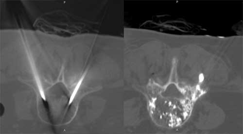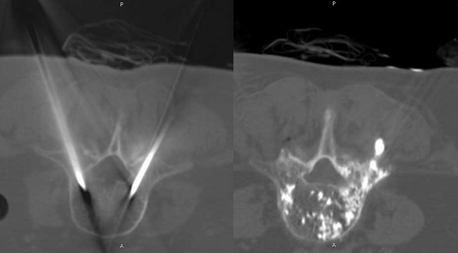 Cementoplastika může výhodně navazovat na předcházející RFA - provedení stabilizace osteolytické léze.